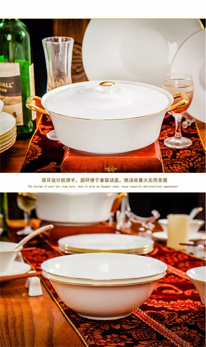 58頭頭金邊螺,一個(gè)湯煲,一個(gè)魚(yú)盤(pán),一個(gè)十寸圓盤(pán),一個(gè)飯勺,一個(gè)煙灰缸,一個(gè)牙簽筒,兩個(gè)面碗,十個(gè)4.5寸飯碗,十個(gè)五個(gè)五寸骨碟,十個(gè)八寸盤(pán),十個(gè)調(diào)羹,十個(gè)筷子架。58頭頭金邊螺,一個(gè)湯煲,一個(gè)魚(yú)盤(pán),一個(gè)十寸圓盤(pán),一個(gè)飯勺,一個(gè)煙灰缸,一個(gè)牙簽筒,兩個(gè)面碗,十個(gè)4.5寸飯碗,十個(gè)五個(gè)五寸骨碟,十個(gè)八寸盤(pán),十個(gè)調(diào)羹,十個(gè)筷子架。